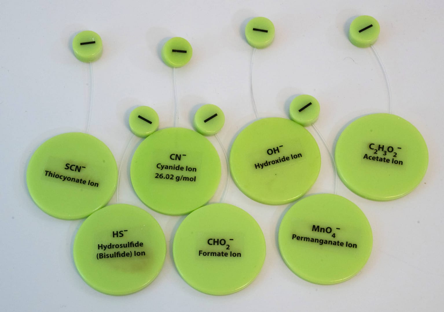 - 4 NO3−, 4 NO2−, 4 HCO3−, 4 OH−, 4 MnO4−, 4 CN−, 4 C2H3O2−